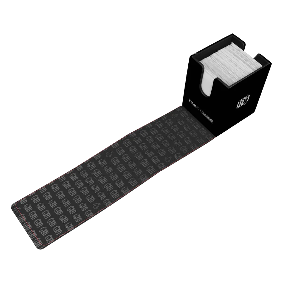 The MAGIC: THE GATHERING®—FINAL FANTASY™ Alcove® Flip Deck Box® features a vibrant, full-color leatherette finish, strong magnetic closure, and dual thumb notches for easy access to your deck. This Deck Box® holds up to 100 double-sleeved standard-size trading cards in Ultra PRO Deck Protector® sleeves.
