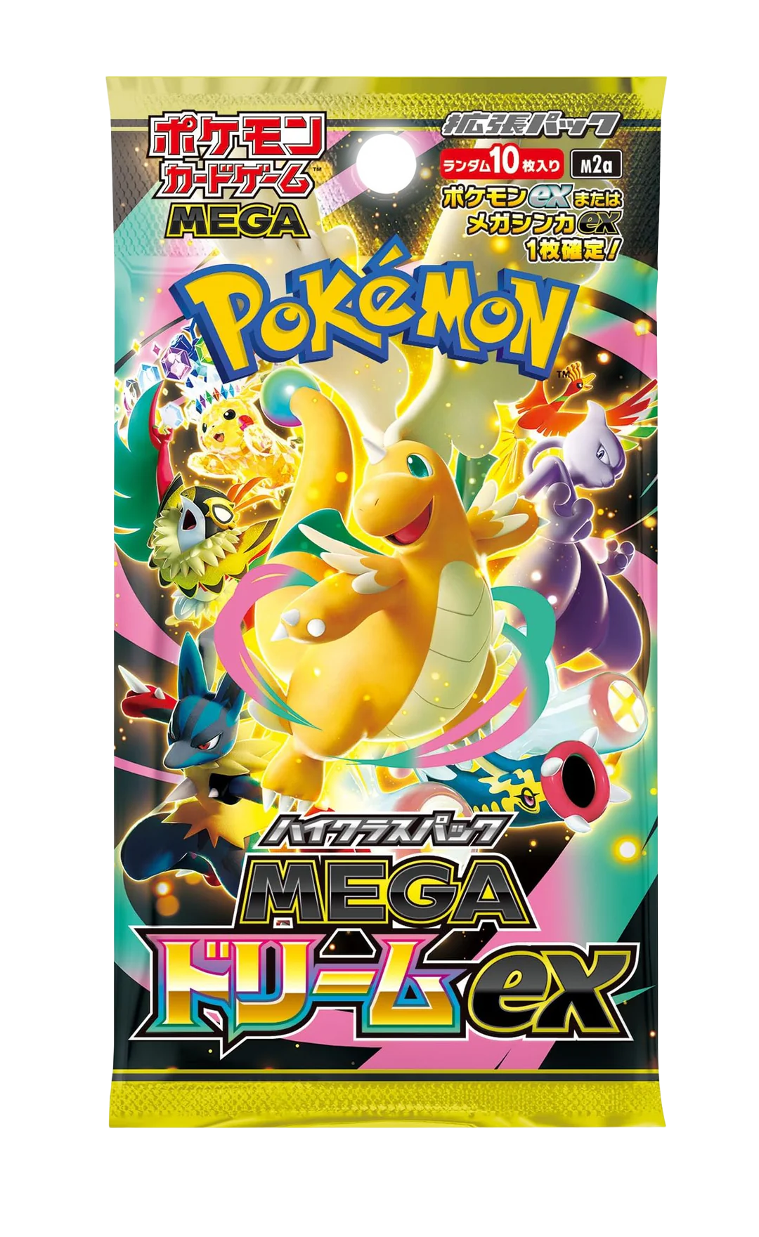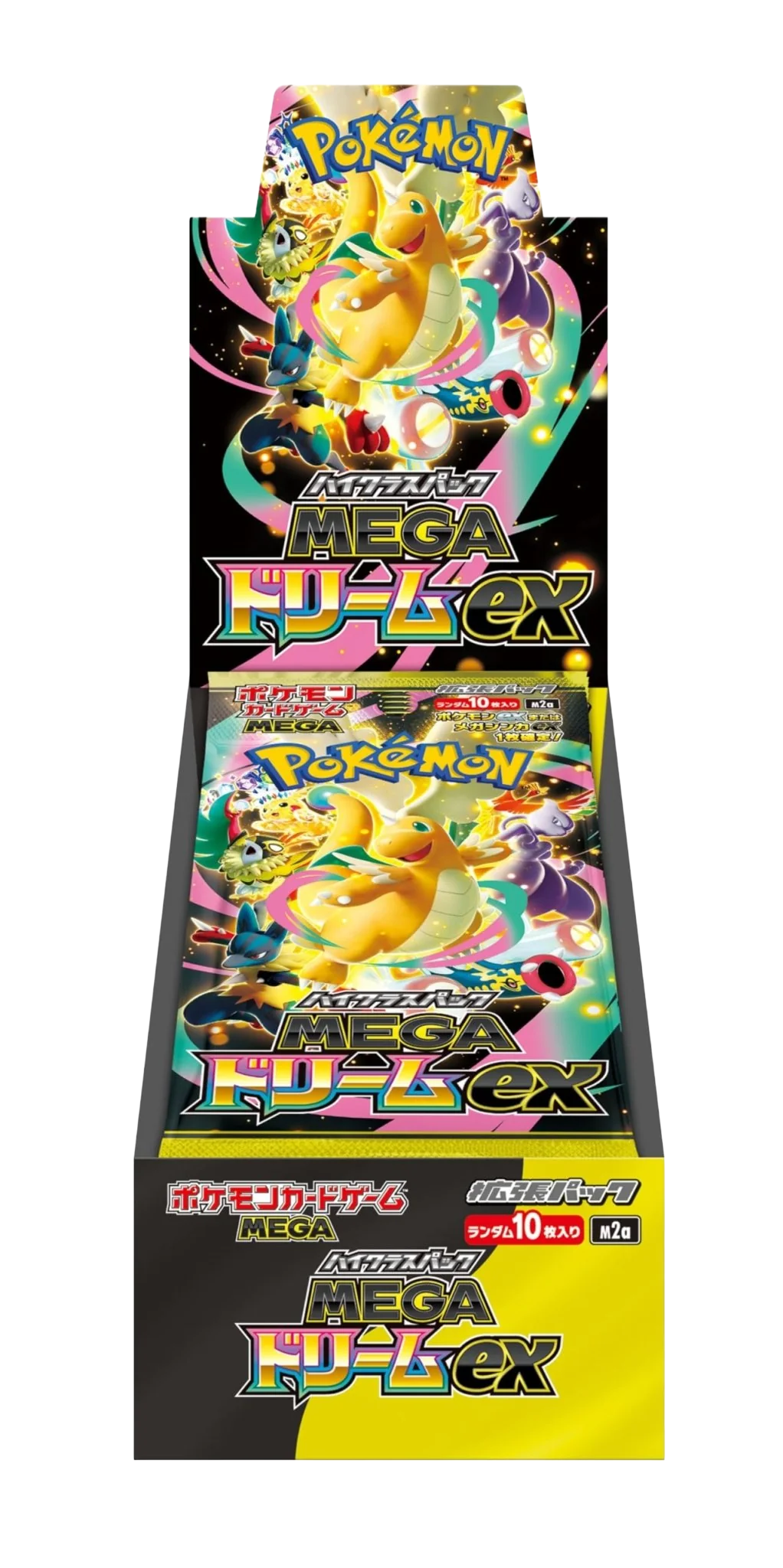 This MEGA Series high-class booster box contains 10 packs, with 10 cards per pack. Cards are randomly inserted from a total lineup of 193 types plus secret cards, so a complete set cannot be assembled from a single box.