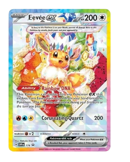 Eevee and its Evolutions spread friendship and joy everywhere they go, and with the adorable accessories in this collection, they’re sure to bring that same happiness to your next big game. Inside, you’ll find a special illustration rare-style promo card featuring Eevee as a Stellar Tera Pokémon ex, ready to evolve thanks to its Rainbow DNA.